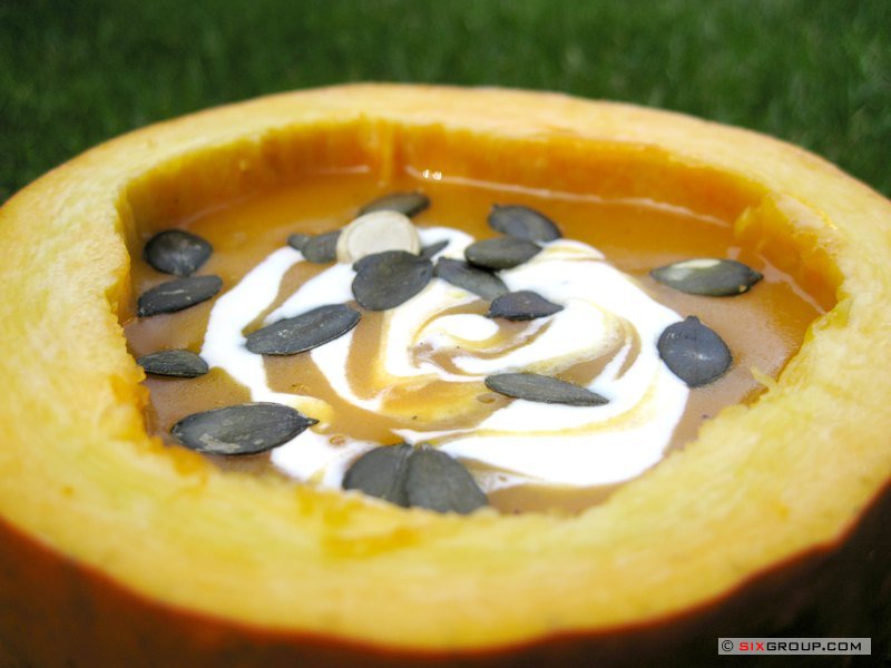 Suppe pürieren, mit Sahne, Zitronensaft und Gewürzen abschmecken.