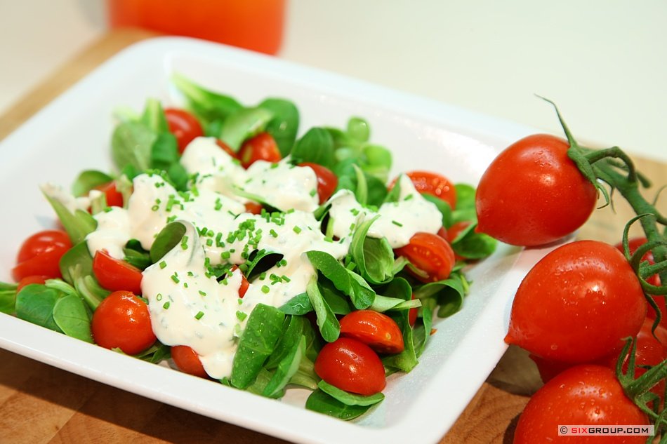 Diese Sauce passt zu Tomatensalat und gemischten Salaten.