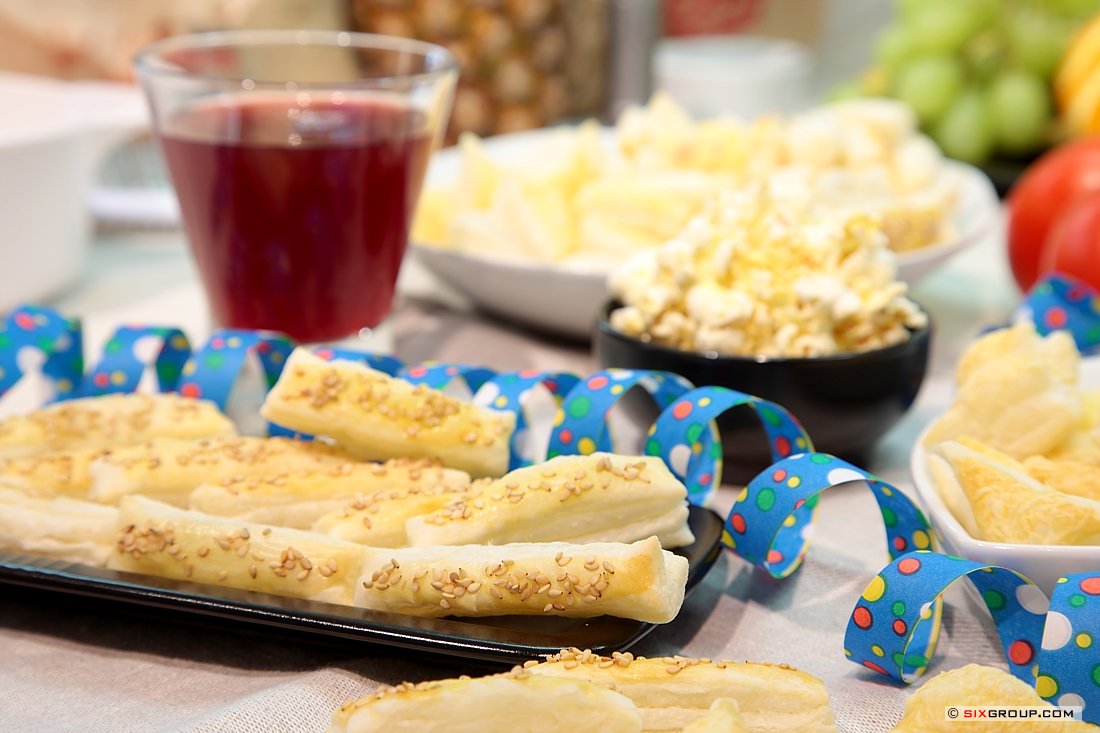 Teigplatten auf einer bemehlten Arbeitsfläche etwas ausrollen und in 2cm breite Streifen schneiden. Eigelb mit Wasser verquirlen und die Teigstreifen damit bestreichen. Mit Sesam bestreuen, auf ein mit Bachpapier belegtes Backblech geben und ca. 10-15 Min. goldbraun backen.